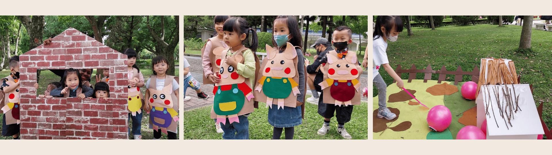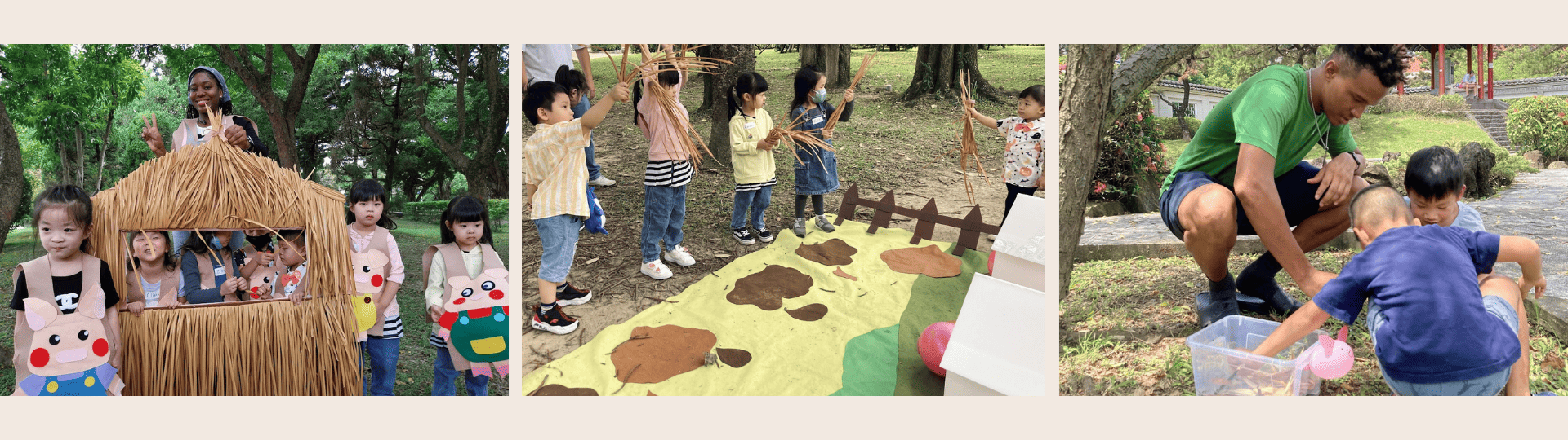 豬豬建築師們上工囉!一起跟著外師在中正紀念堂蓋房子吧!茅草屋、木屋、磚塊屋通通都難不倒我們!“Little pig, little pig, let me come in.” 小心邪惡大野狼的攻擊!呼~呼~呼~喔不!房子被大野狼吹走了,小豬們也被吹得遠遠失蹤了,豬豬建築師們快來一起尋找消失的豬豬伙伴吧!看更多上課花絮>>