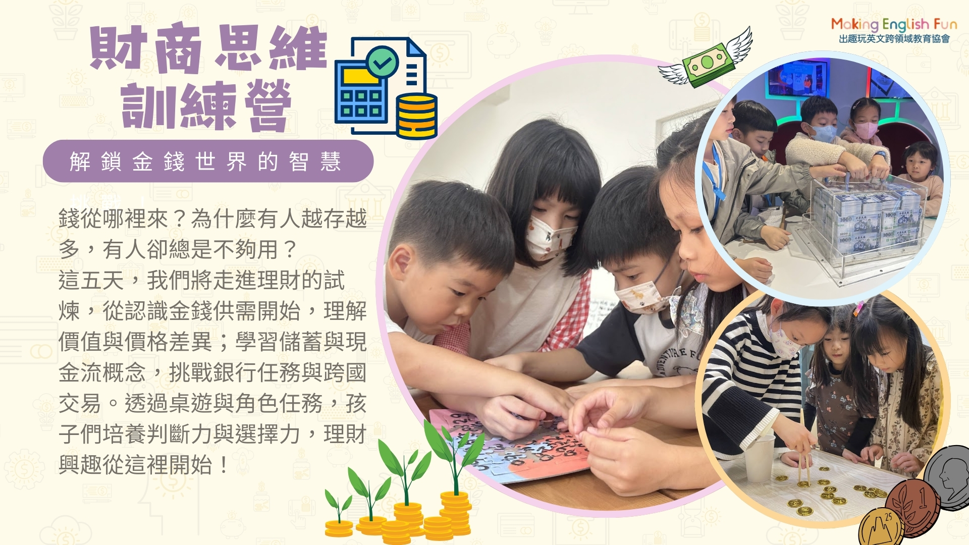 學習儲蓄與現金流概念,挑戰銀行任務與跨國交易。透過桌遊與角色任務,孩子們培養判斷力與選擇力,理財興趣從這裡開始!