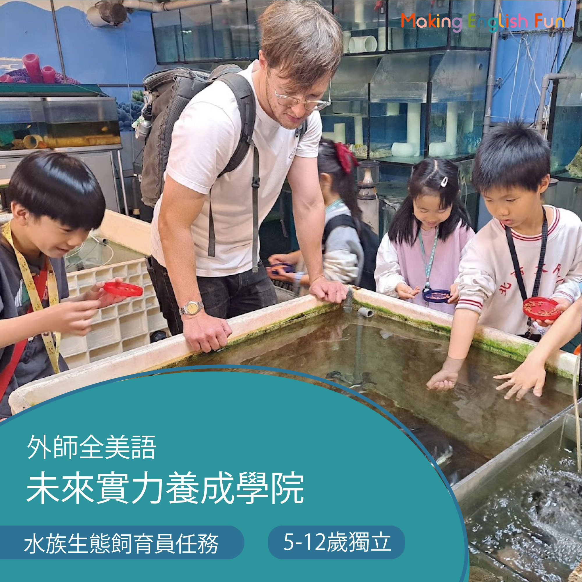 1、費用包含:外師講師課程費$950,魚樂園因為場地有限,課程會在魚樂園飼育員的工作場所上課,孩子需全程獨立上課家長無法陪伴,老師會幫孩子拍照做課程紀錄,請確認孩子可以獨立上課再報名!(若上課當天孩子哭哭無法離開家長,課程將不提供補課或退費,家長亦無法進入上課場域陪同上課)