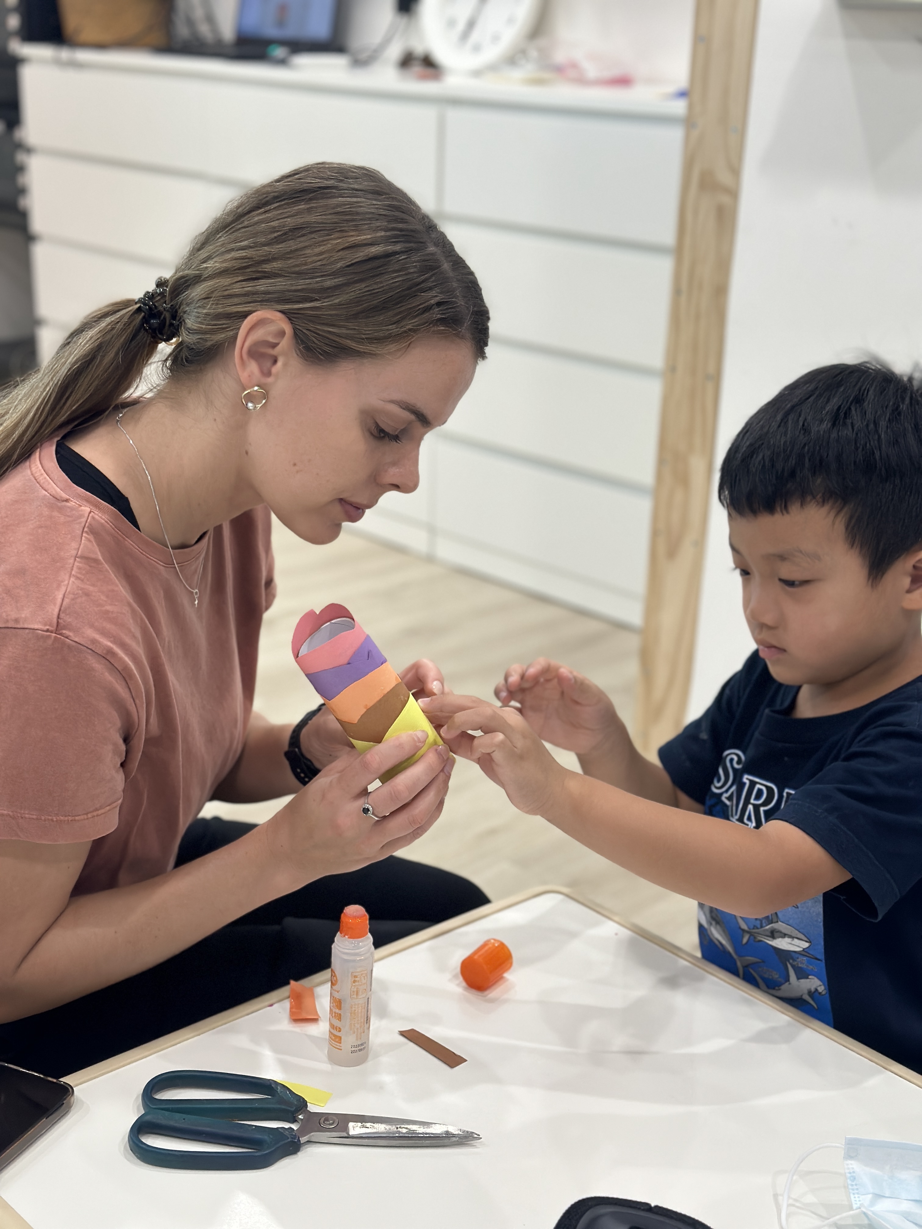 當材料擺在眼前的那一刻,孩子們的目光瞬間被吸引。從顏色搭配、形狀變化到素材選擇,每一個細節都充滿想像。有人靈光一閃,有人慢慢構思,但每一步都更投入。原來看似簡單的材料,其實藏著無限的創作可能。
