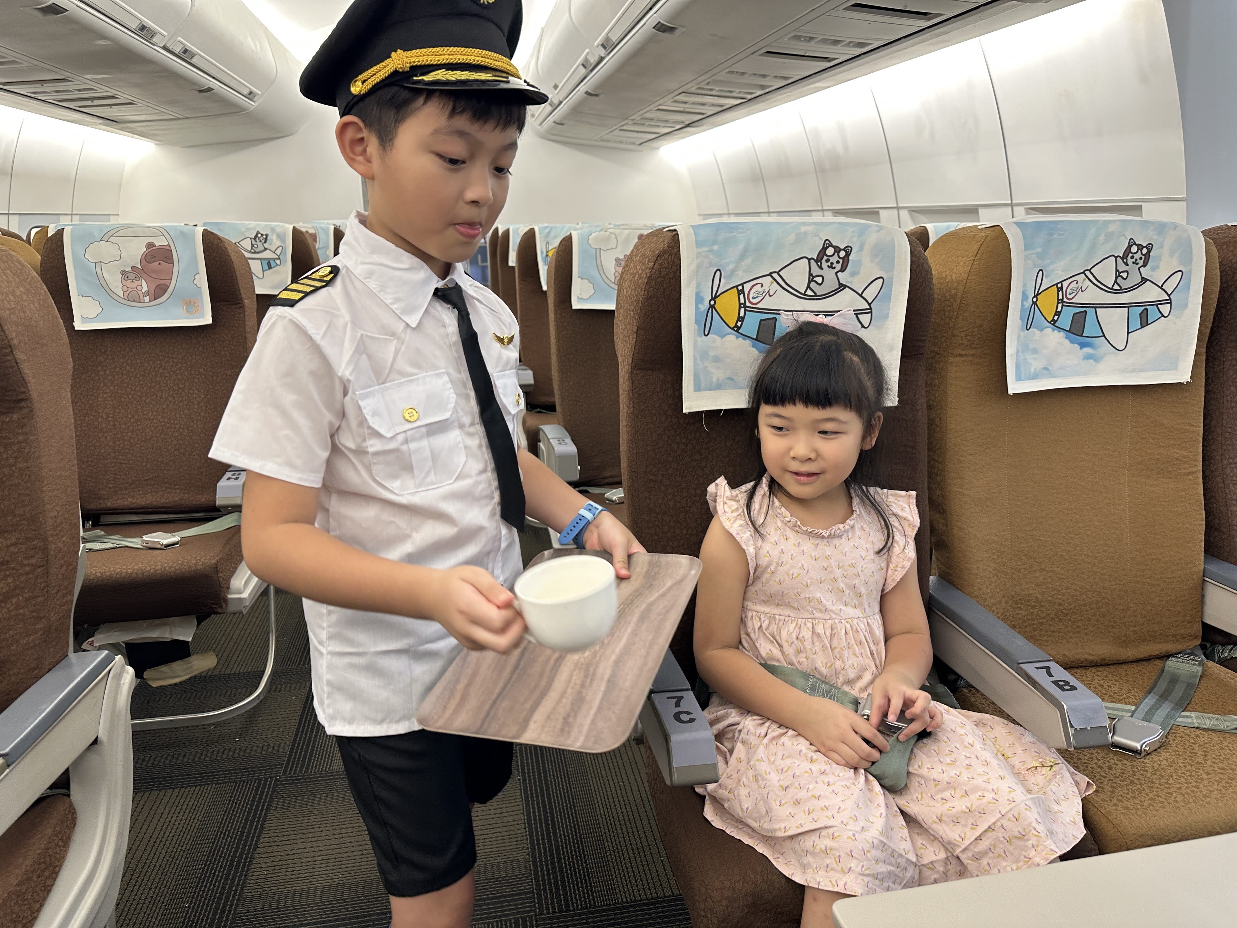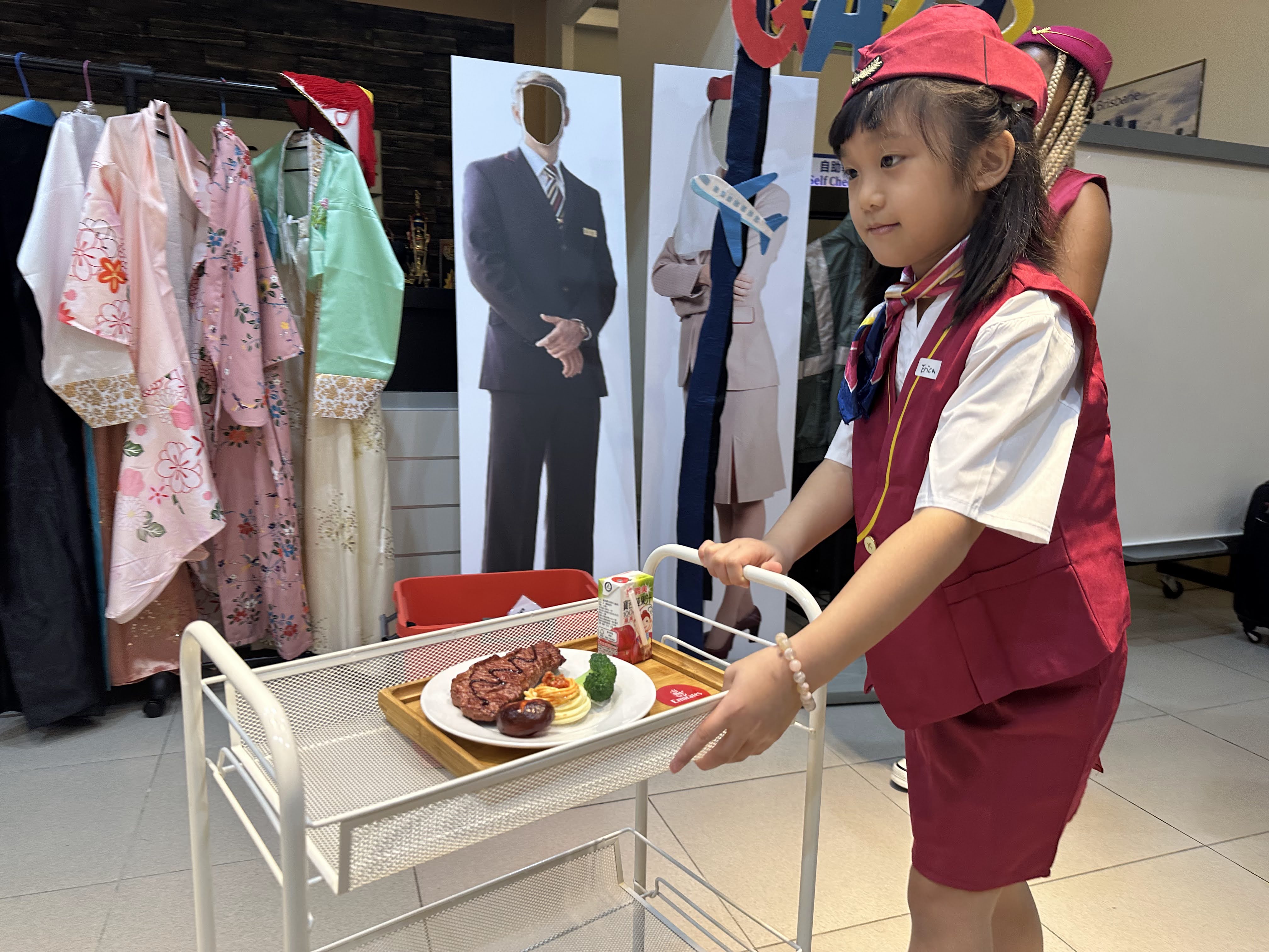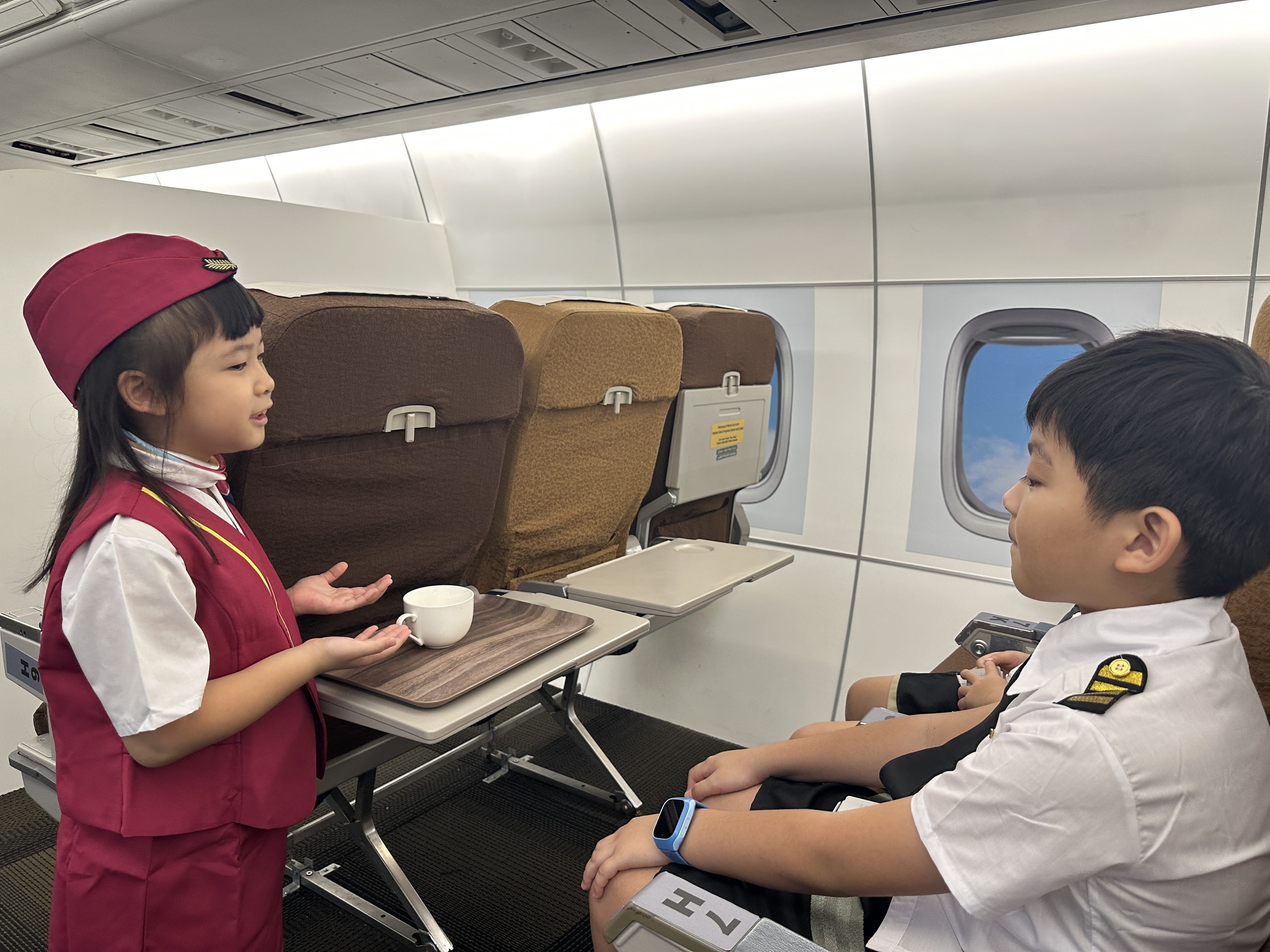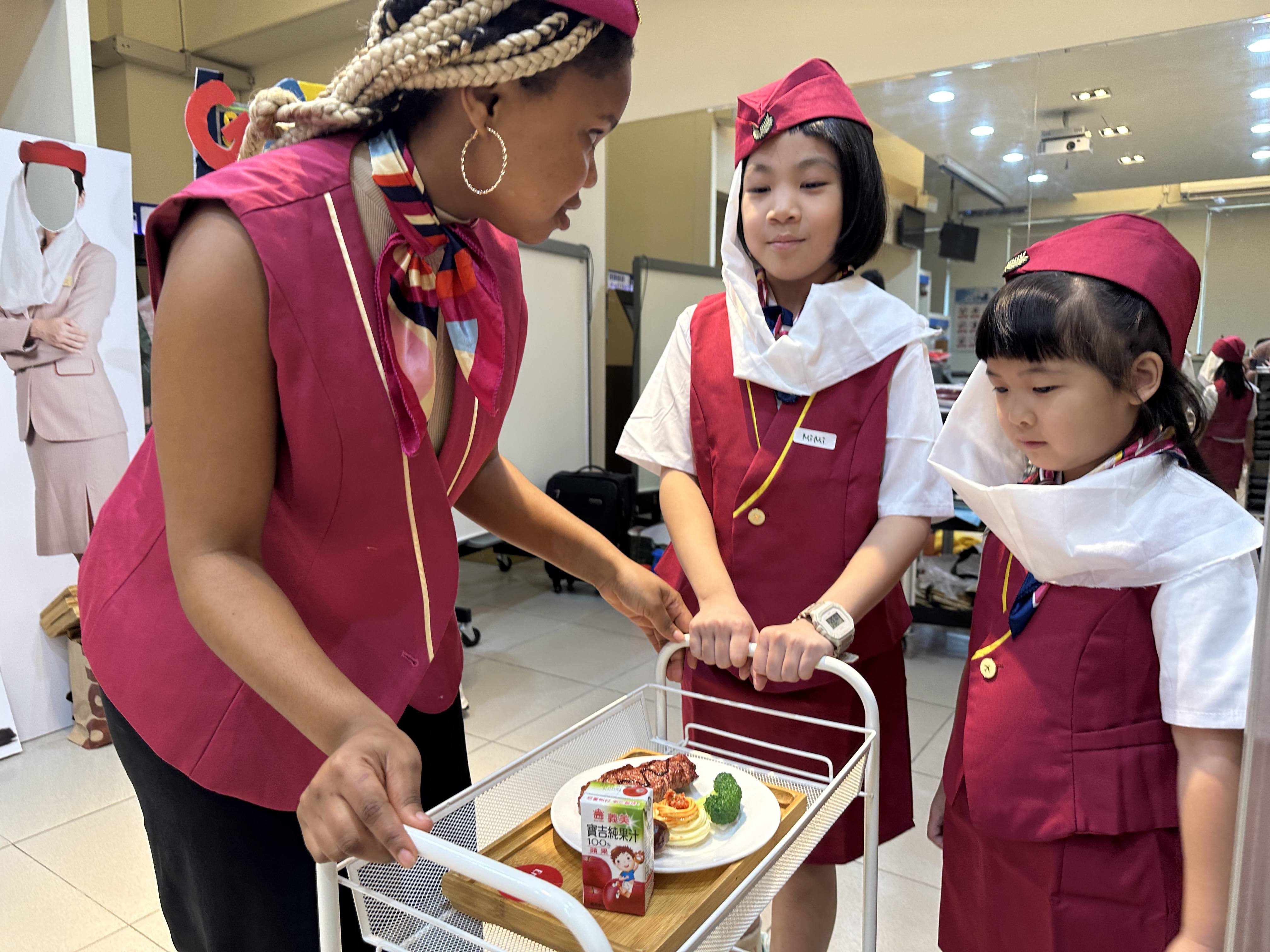 小小空服員課程讓孩子穿上制服,扮演機艙中的小小服務員,學習迎接乘客、示範安全措施與飛行禮儀。他們還會檢查機艙內的物品是否歸位、固定妥當,並模擬送餐服務。透過親身演練與角色互動,孩子們在遊戲中培養專注力、禮貌與團隊合作精神,開心又充實地體驗空服員的日常工作。