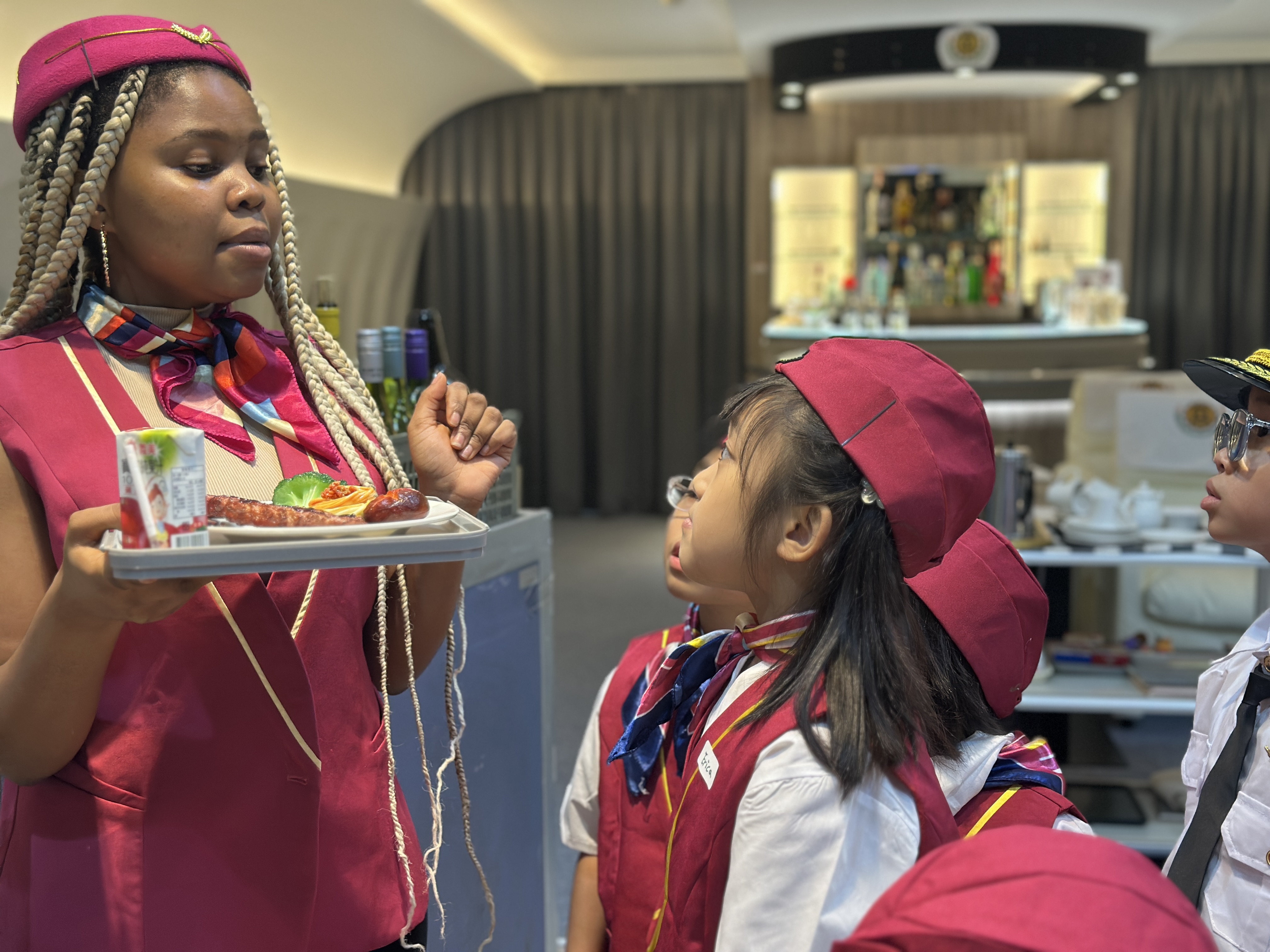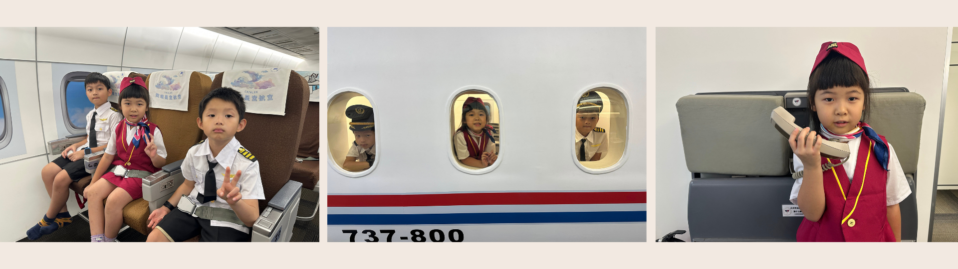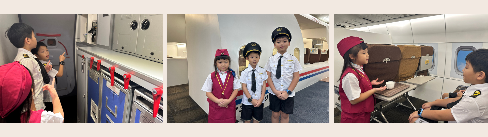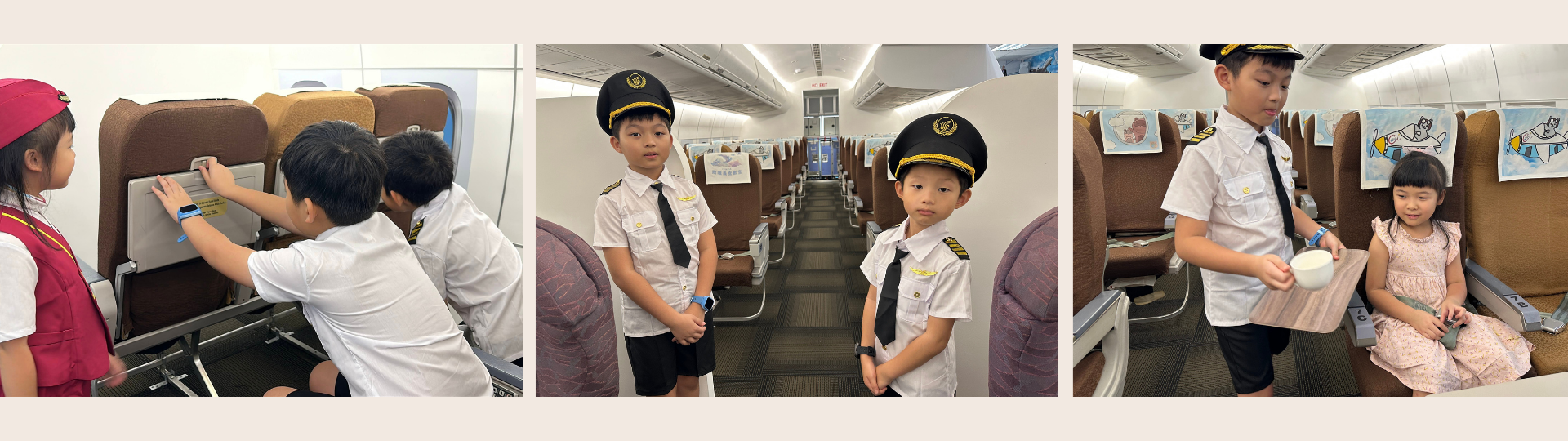 小小空服員課程讓孩子穿上制服,扮演機艙中的小小服務員,學習迎接乘客、示範安全措施與飛行禮儀。他們還會檢查機艙內的物品是否歸位、固定妥當,並模擬送餐服務。透過親身演練與角色互動,孩子們在遊戲中培養專注力、禮貌與團隊合作精神,開心又充實地體驗空服員的日常工作。